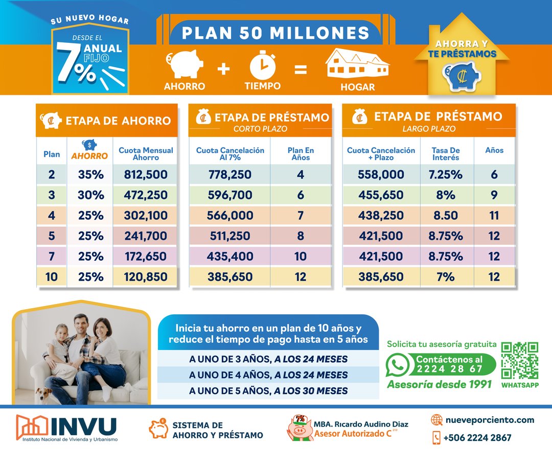 🏡 Tu casa propia ahora más fácil con los Planes del INVU. Asesor autorizado con más de 30 años de experiencia (desde 1991) en planes maduros INVU, planes avanzados INVU y nuevos planes del INVU. Brindamos atención personalizada en toda Costa Rica, con trámites rápidos y seguros mediante nuestra página web. ✅ ¿Qué podemos hacer por ti? Trámites y cambios de plan del INVU Recaudación sencilla de cuotas de ahorro Estados de cuenta claros y accesibles Estudios de maduración y traspaso de planes Deducciones salariales sin complicaciones Ahorro desde solo un 7% para tu vivienda 📞 8874-8989.🌐 Atención nacional online: ¡Dondequiera que estés, estamos contigo! #INVU #INVUCostaRica #PlanesINVU #PlanesMadurosINVU #AsesorINVU #invucalculadora